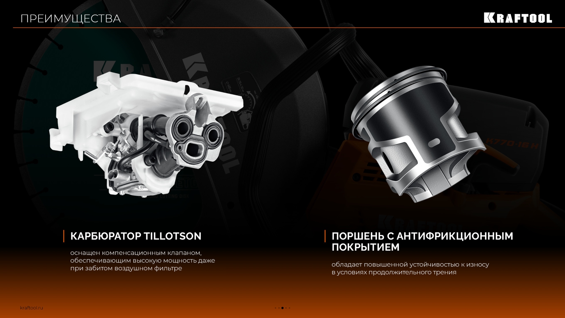 Бензорез KRAFTOOL K770-14 H предназначен для выполнения резов в литом бетоне, камне, кирпиче, металлических конструкциях, стенах, асфальте и бордюрах. Универсальный бензорез оснащен одной из самых результативных центробежных систем очистки воздуха нового поколения, которая обеспечивает работу инструмента без замены фильтра в течение до одного года, а также встроенной автоматической системой компенсации загрязнения фильтра и высокоэффективной системой подавления вибраций, оснащается двигателем, который уменьшает выбросы на 50% и расход топлива максимум на 25%.